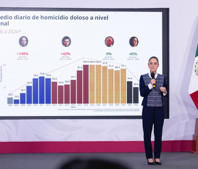 Byadmin14 abril, 2026* “En nuestro gobierno, con cifras preliminares de 2026, hemos reducido los homicidios dolosos del 2024, 91.7 al 2026 en 50.8 diarios. Seguimos...