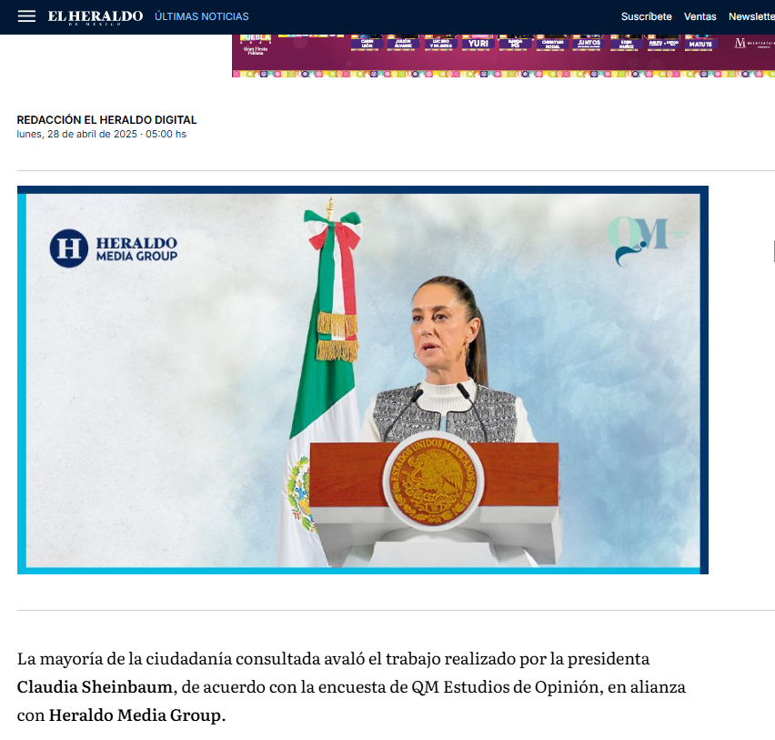 “NO VAMOS A DEFRAUDAR”: PRESIDENTA CLAUDIA SHEINBAUM AGRADECE AL PUEBLO DE MÉXICO POR APROBACIÓN DEL 78% EN ENCUESTA DE EL HERALDO