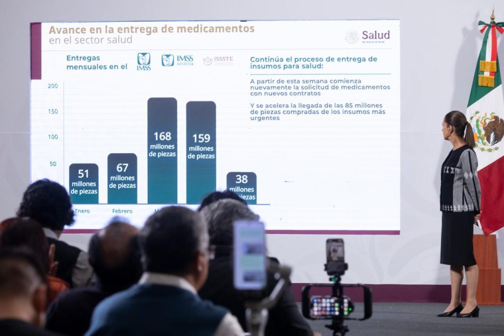 * El IMSS tiene un abasto de medicamentos e insumos médicos del 94.3 por ciento; el ISSSTE del 90 por ciento y el IMSS Bienestar de aproximadamente el 87 por ciento.