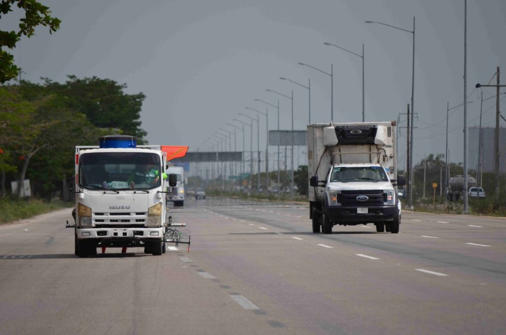 La aplicación de pintura inició en el cuerpo “A” de la carretera Mérida–Progreso, posteriormente serán atendidas la Mérida–Chetumal, Mérida–Cancún, Mérida–Tizimín y la Mérida–Celestún.