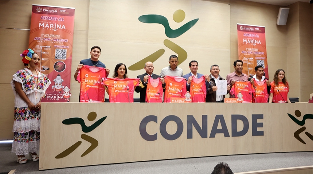 Ciudad de México, 13 de abril de 2026.- El Maratón de la Marina 2026 fue promovido en el auditorio de la Conade durante una rueda de prensa en la que se dieron a conocer los pormenores de este importante evento deportivo que se realizará el próximo 7 de junio en Yucatán.